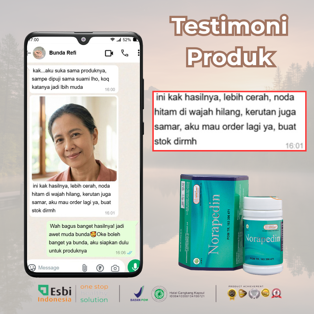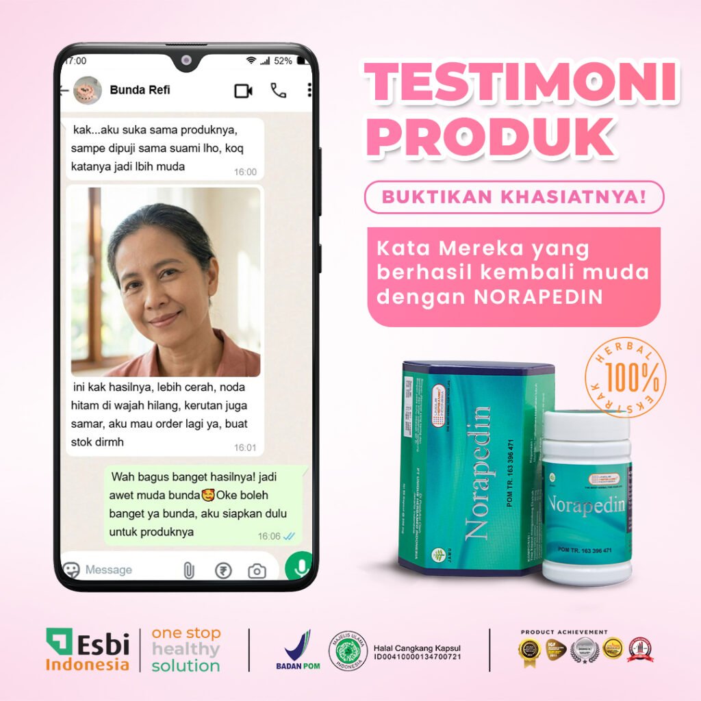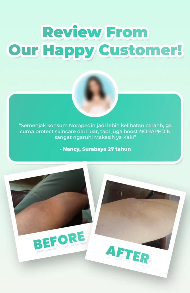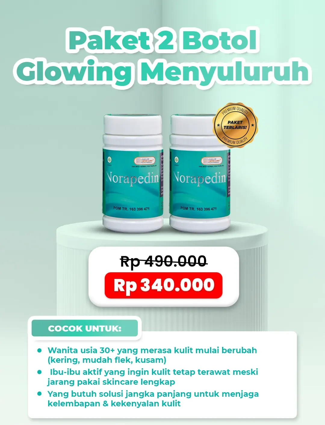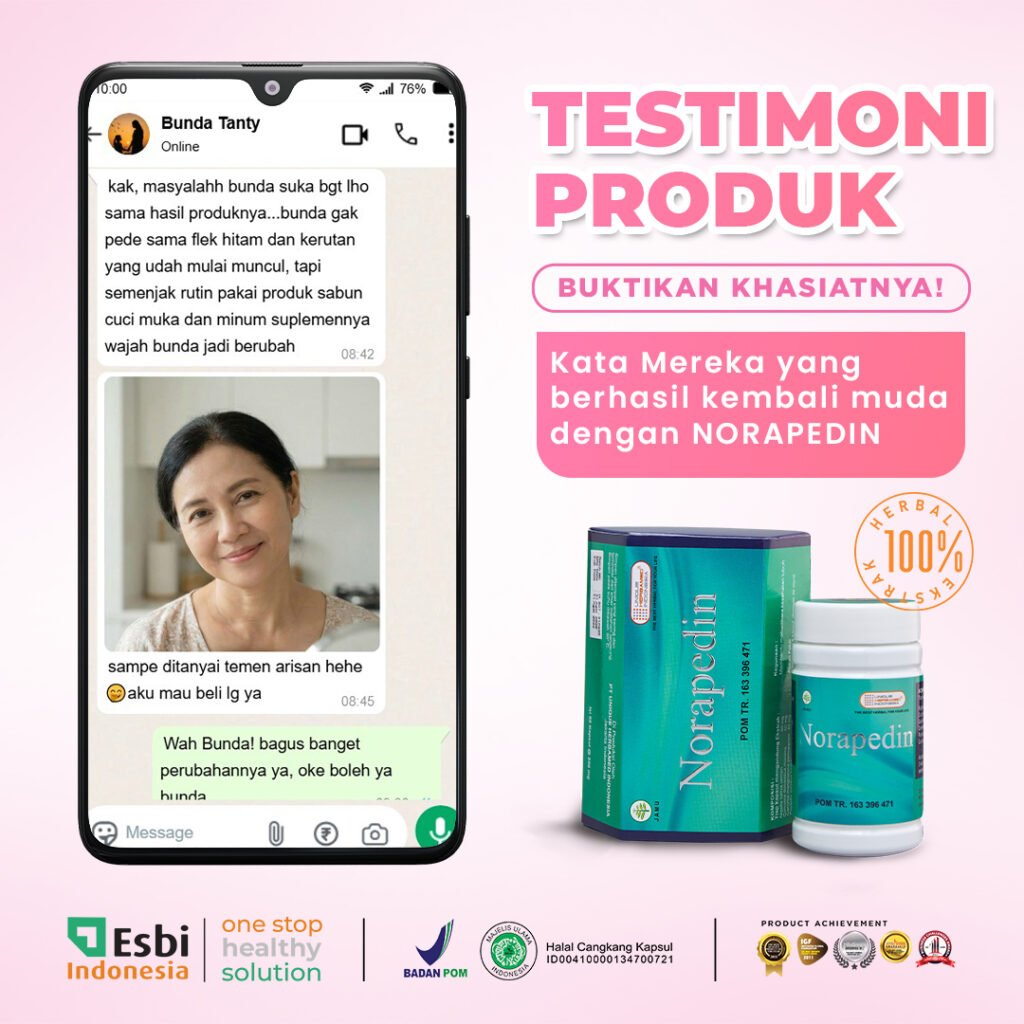 Kaya antioksidan aktif, NORAPEDIN membantu detoks racun, memperbaiki fungsi organ, dan mempercepat regenerasi sel kulit. Hasilnya, kulit jadi lebih cerah, lembap alami, dan tampak awet muda tanpa flek, kerutan, atau kusam.