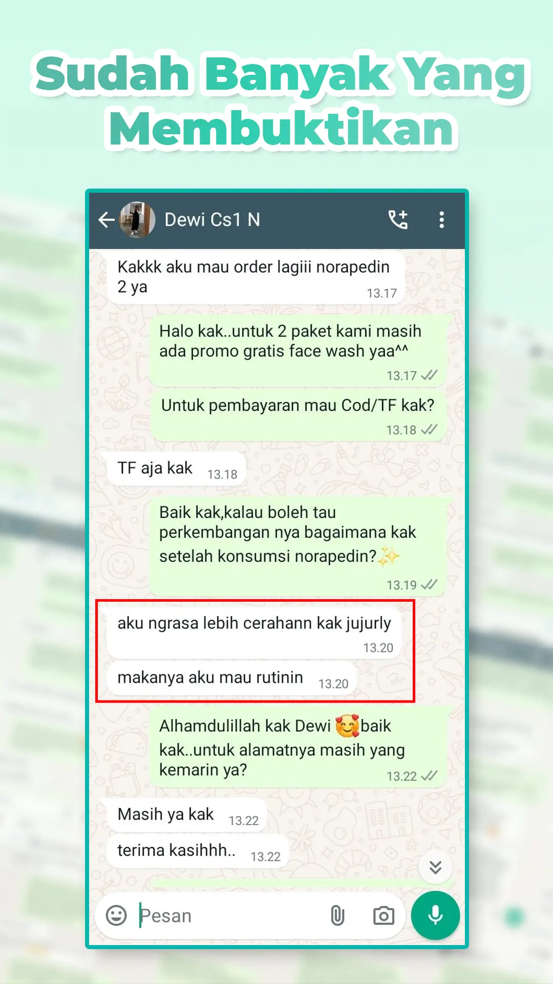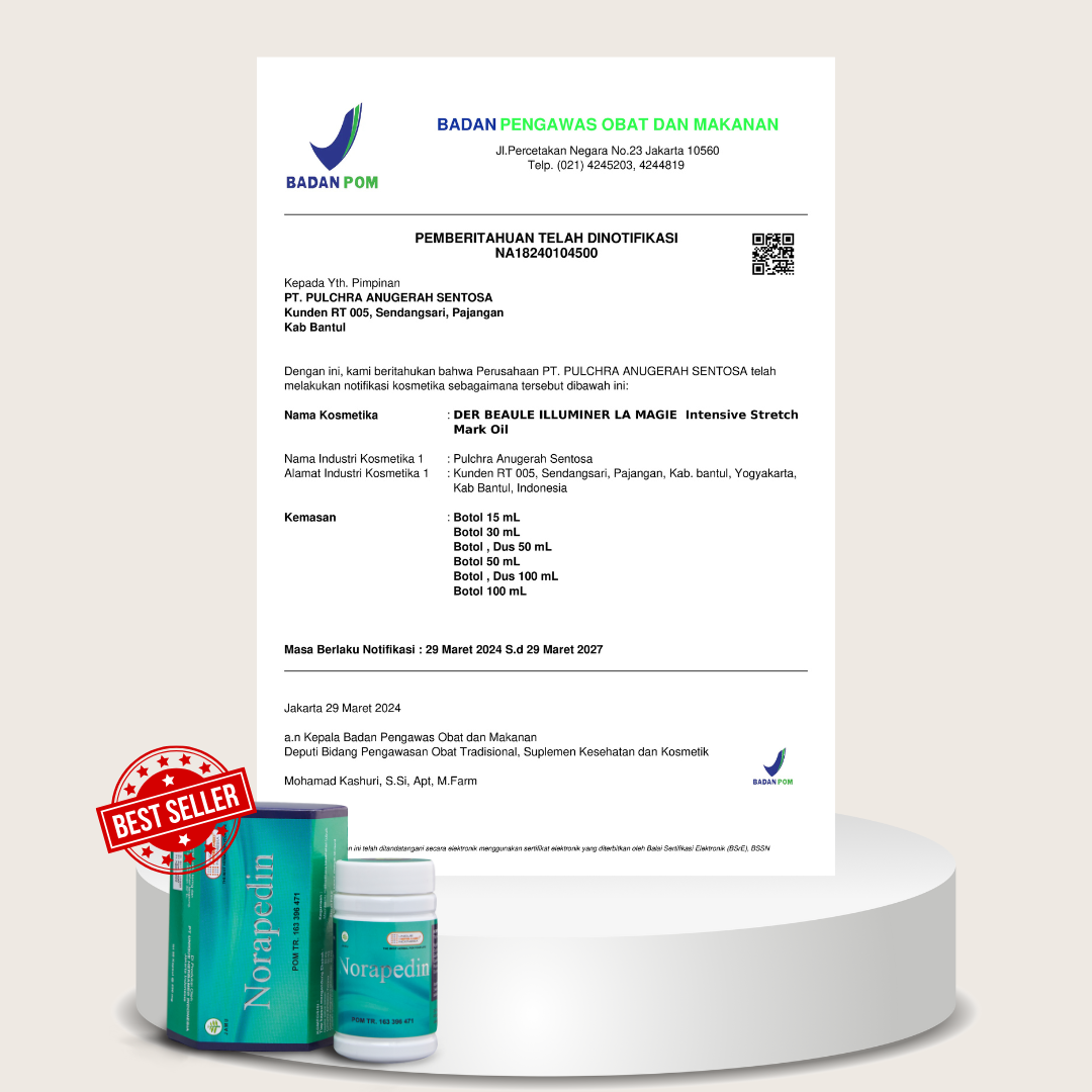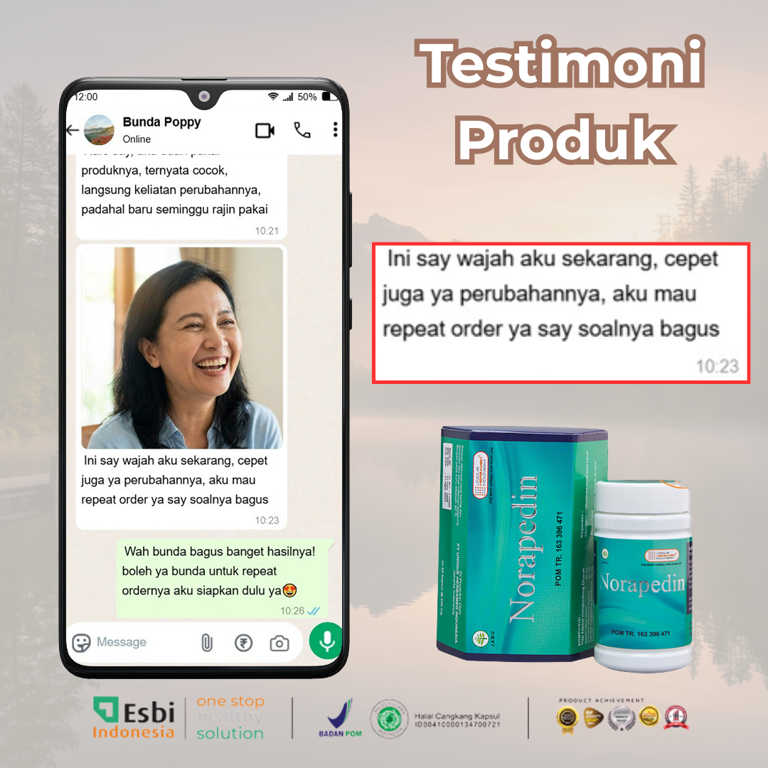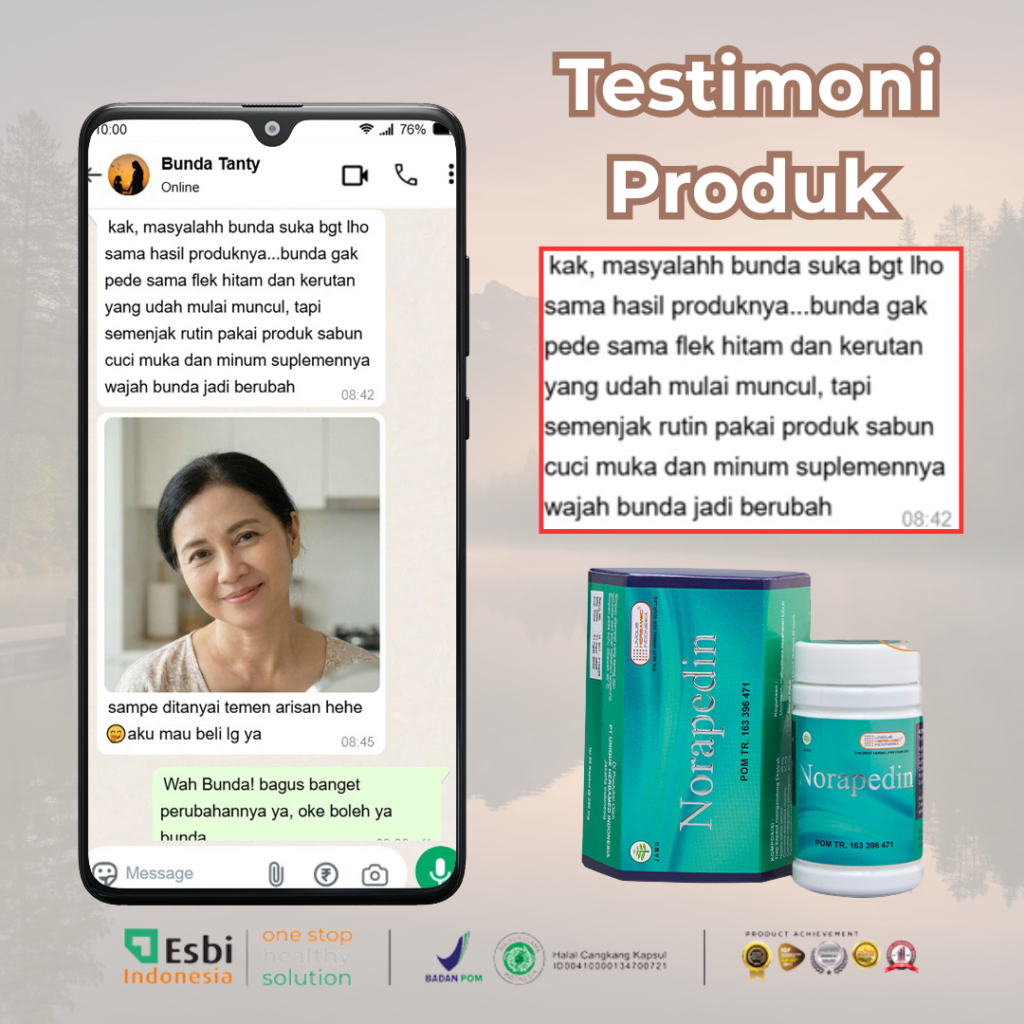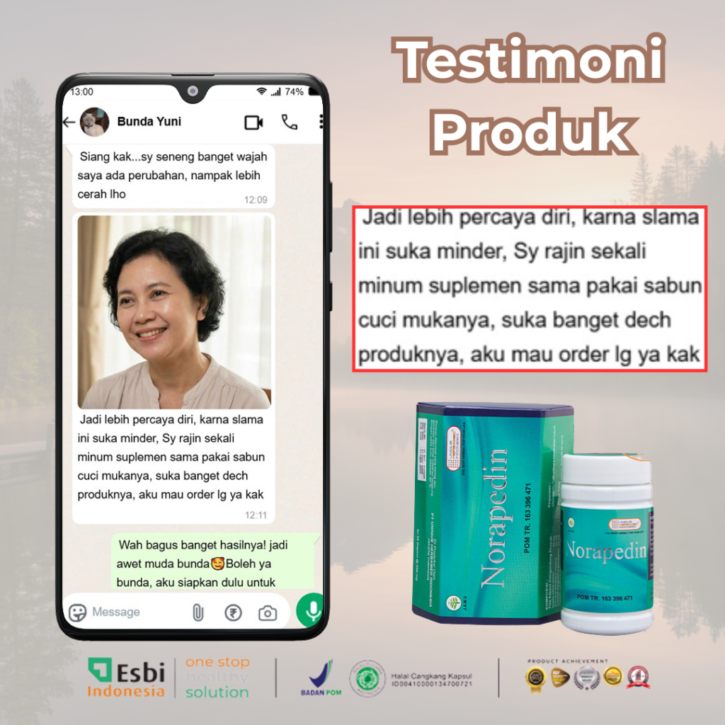 Kaya antioksidan aktif, NORAPEDIN membantu detoks racun, memperbaiki fungsi organ, dan mempercepat regenerasi sel kulit. Hasilnya, kulit jadi lebih cerah, lembap alami, dan tampak awet muda tanpa flek, kerutan, atau kusam.