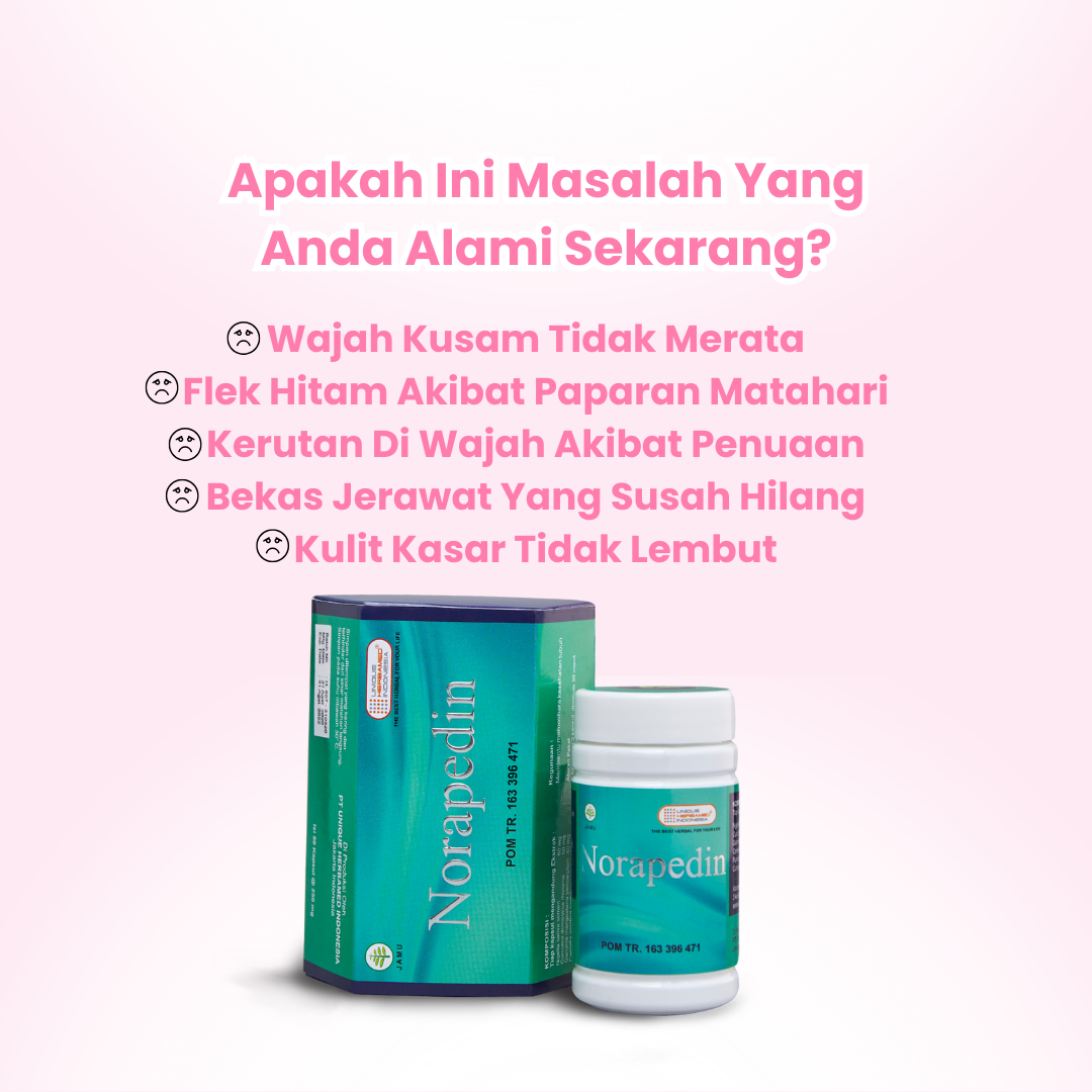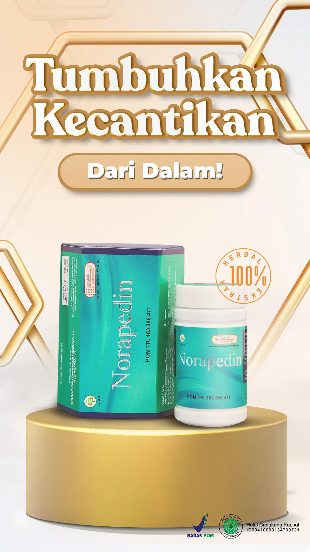 NORAPEDIN adalah suplemen herbal 100% ekstrak alami yang diformulasikan untuk merawat kecantikan dari dalam. Bukan hanya menyamarkan masalah kulit, tapi bekerja langsung pada akar penyebabnya — seperti stres oksidatif, polusi, dan ketidakseimbangan hormon yang merusak sel-sel kulit.
