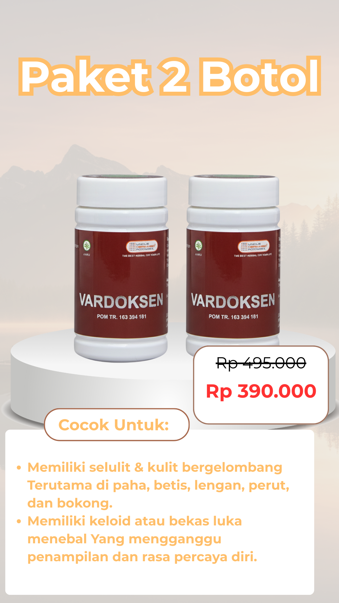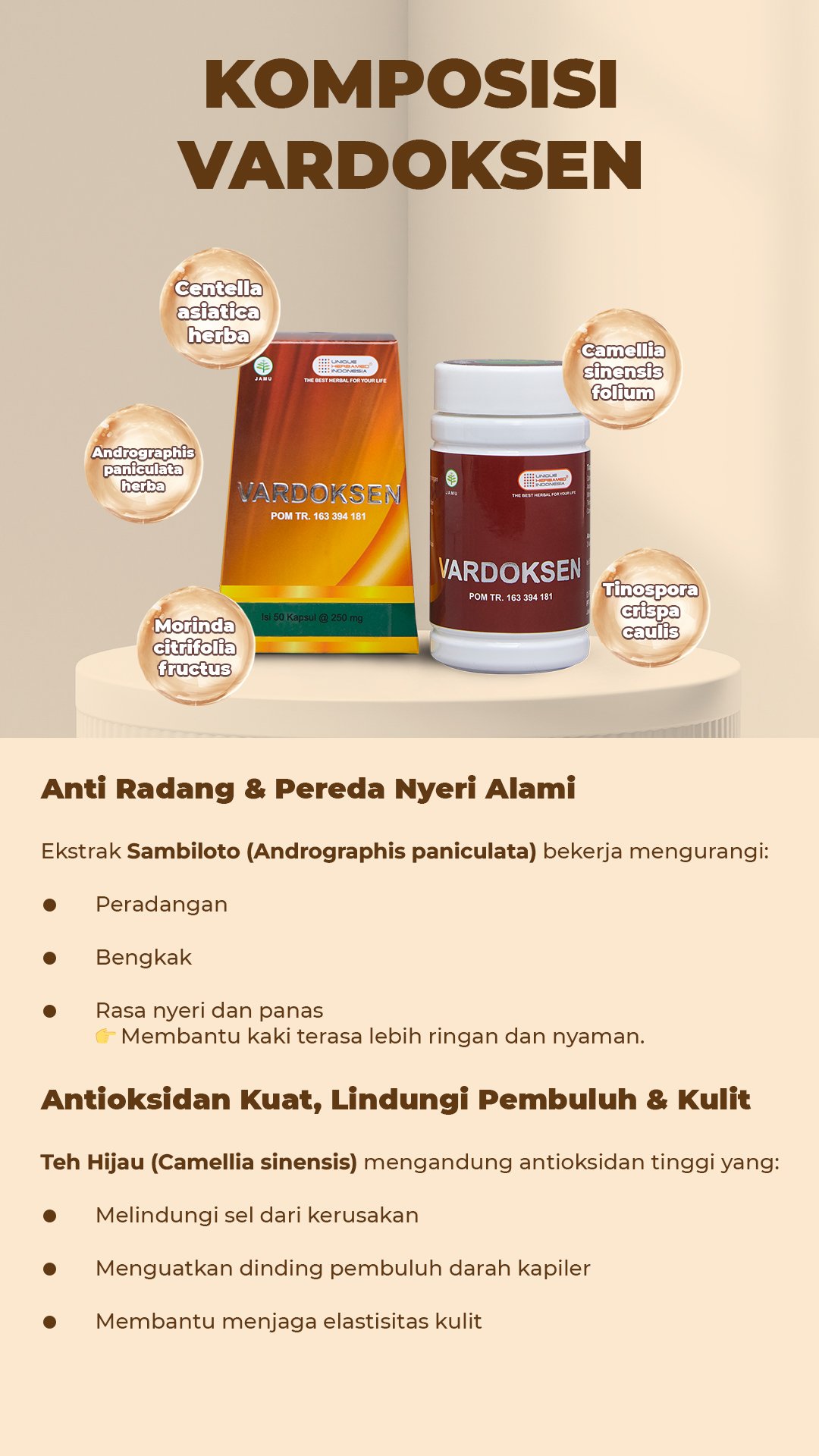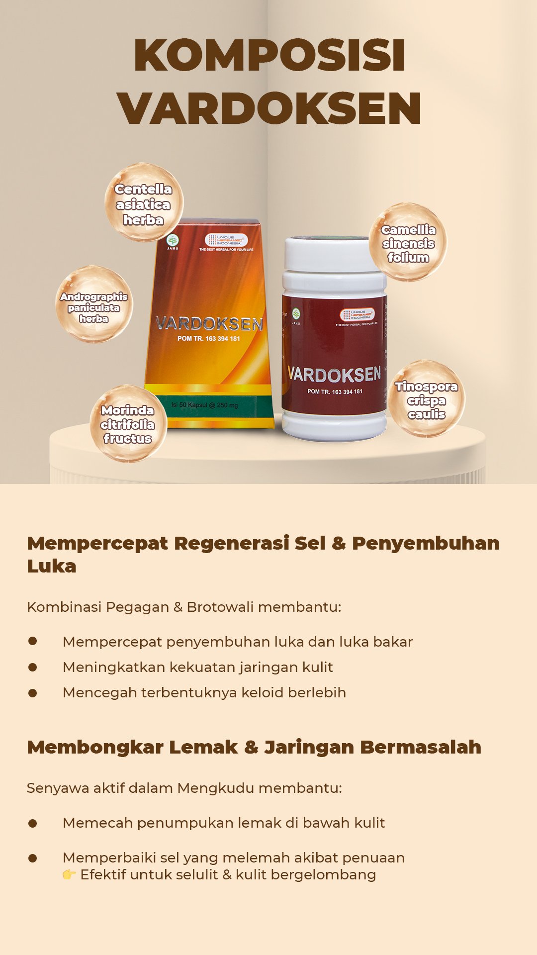 VARDOKSEN adalah herbal medis 100% ekstrak alami terstandar yang membantu melancarkan peredaran darah, memperbaiki jaringan tubuh, dan memulihkan kulit dari dalam.